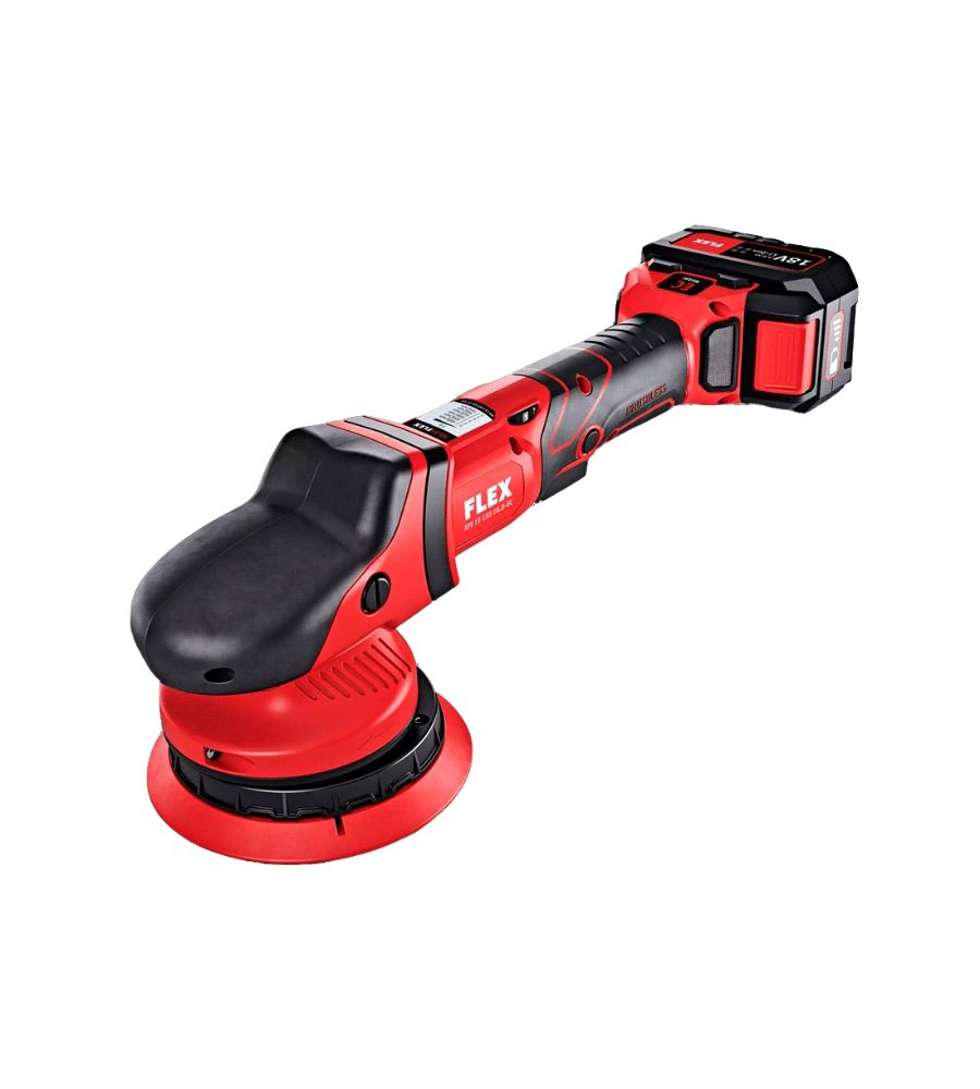 La FLEX XFE 150 18.0-EC / 5.0 Set es una pulidora excéntrica a batería de alto rendimiento, diseñada especialmente para los profesionales del detailing que buscan libertad de movimiento, potencia constante y acabados perfectos sin hologramas.