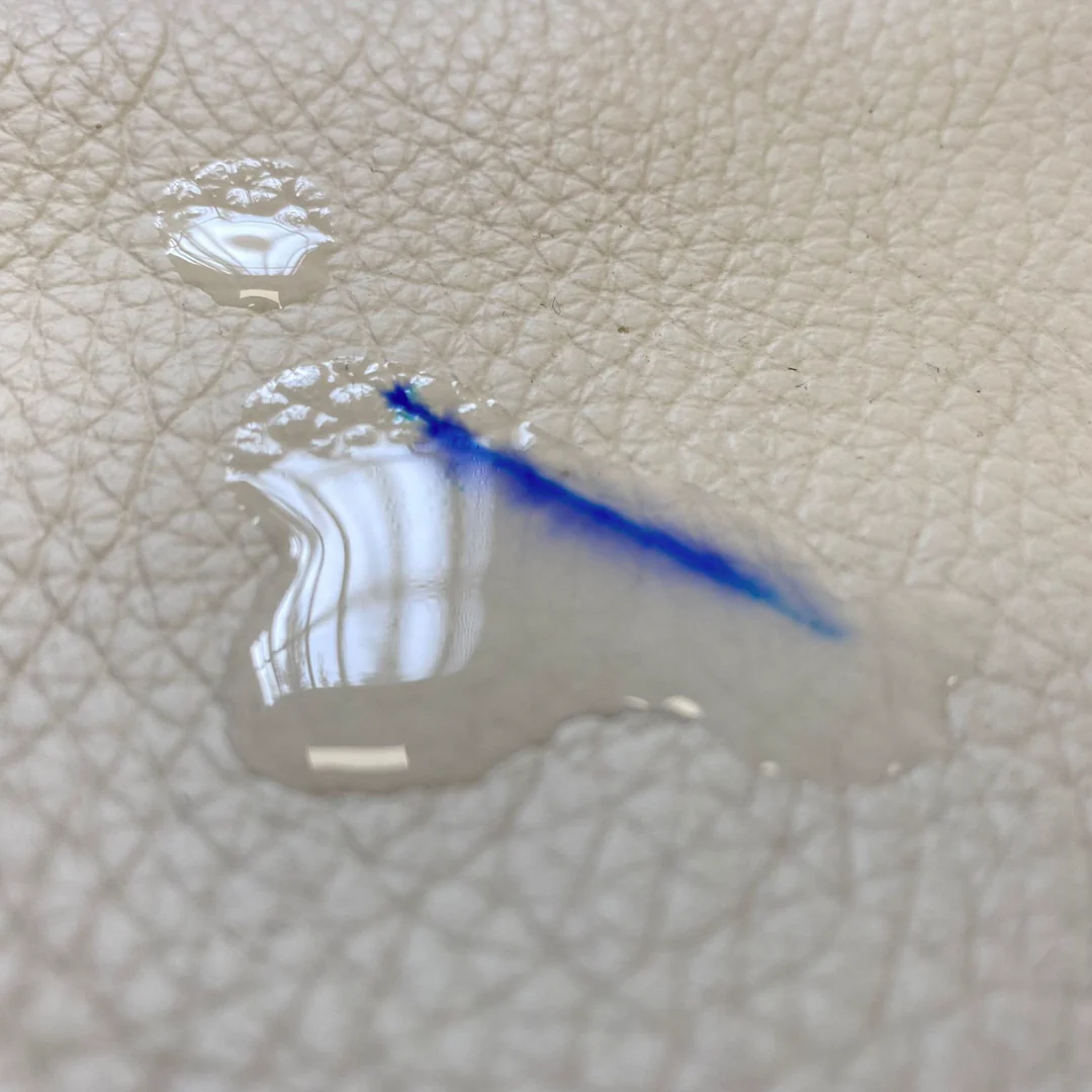 Elimina eficazmente tintes, tinta de bolígrafo y marcas de rotulador en superficies de cuero, polipiel (PU) y PVC sin dañarlas. Este potente limpiador está formulado con ingredientes de origen vegetal y algas marinas, completamente libre de disolventes agresivos.