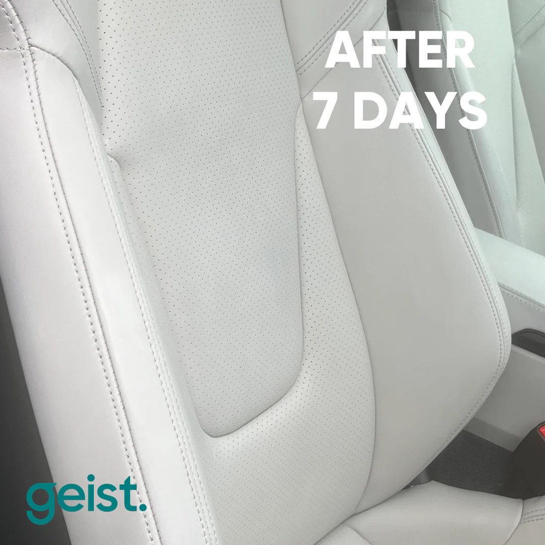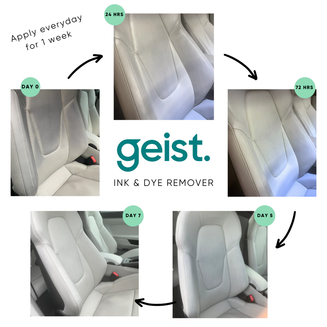 Cuando la marca de bolígrafo o tinte ya no sea visible, limpie la superficie con GEIST. Rapid Leather & Vinyl Cleaner o un paño húmedo y dejar secar.