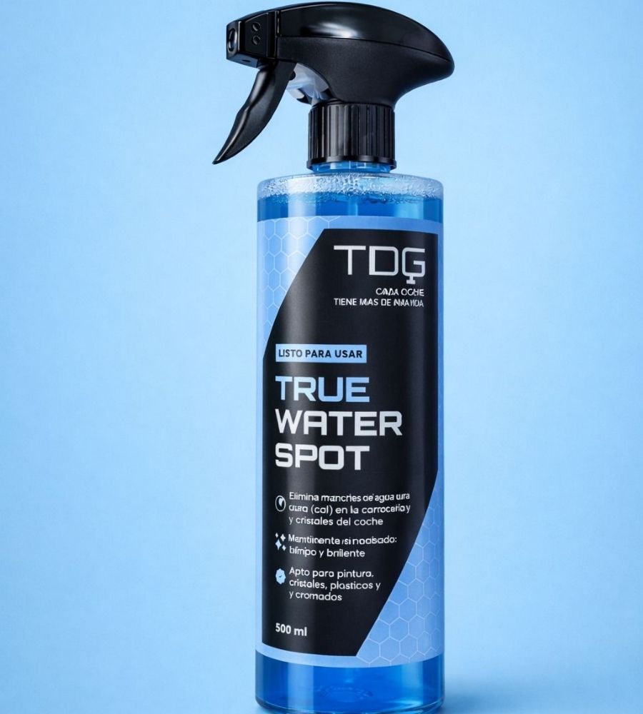 TDG True Water Spot es un limpiador antical listo para usar, diseñado para eliminar manchas de agua dura (cal) y marcas minerales que se quedan pegadas a la pintura y a los cristales. Actúa disolviendo los depósitos minerales sin necesidad de pulido, ayudando a recuperar un acabado limpio y brillante.